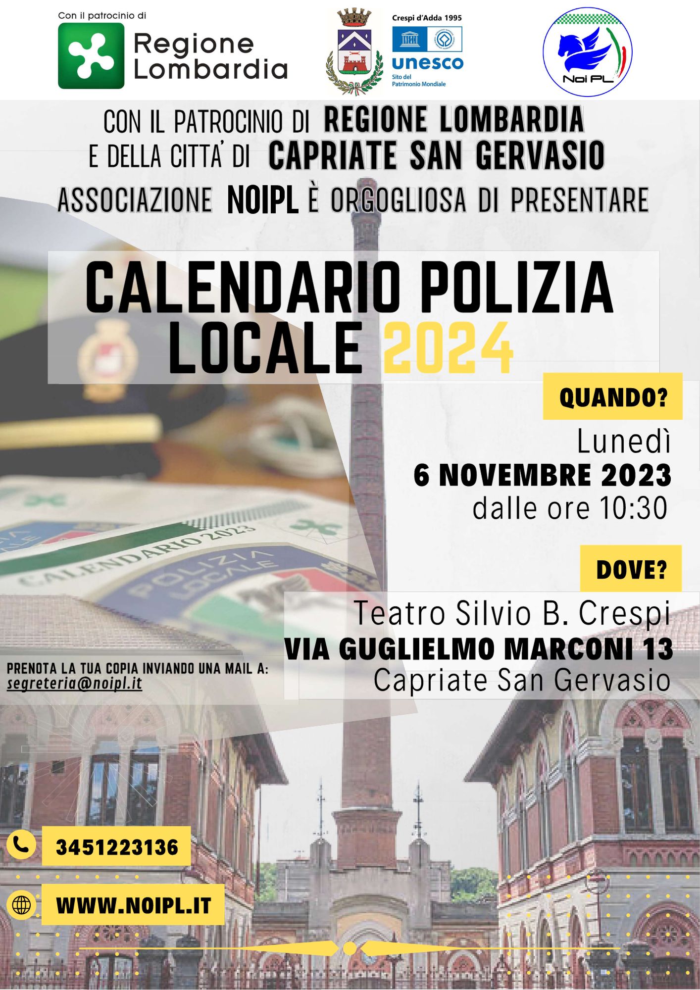 La Polizia Locale della Lombardia ha sempre avuto un ruolo cruciale nella tutela della sicurezza e nell’assistenza alle comunità locali. Questo impegno instancabile merita di essere celebrato e riconosciuto, ed è proprio ciò che è accadrà Lunedì 6 novembre 2023 al Teatro Silvio B. Crespi a Capriate San Gervasio. L’Associazione NoiPL presenterà con orgoglio il Calendario della Polizia Locale 2024.